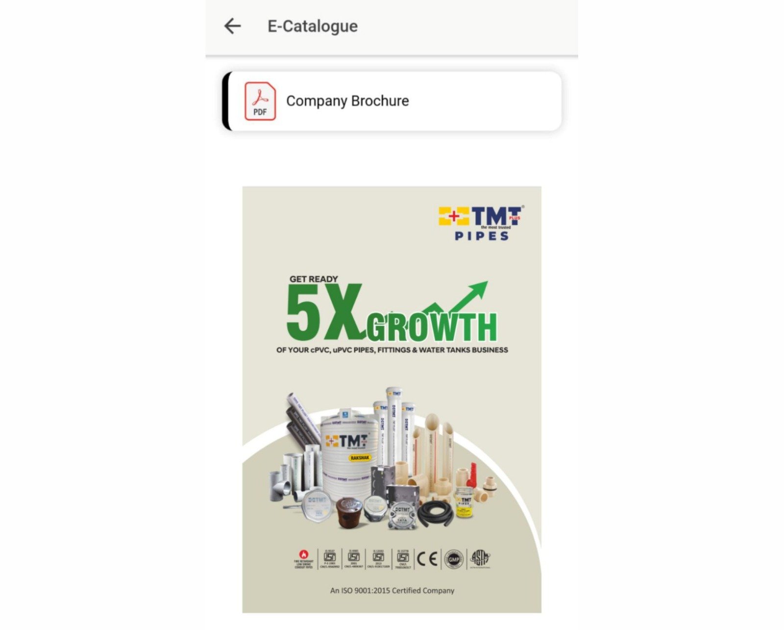 जब आप साथी समृद्धि ऐप में रजिस्टर या लॉगिन करेंगे, तो कैटलॉग्स में जाएं। वहाँ आपको TMT Plus कैटलॉग, सैनिटरी और इलेक्ट्रिकल प्राइस लिस्ट की PDF मिलेगी।