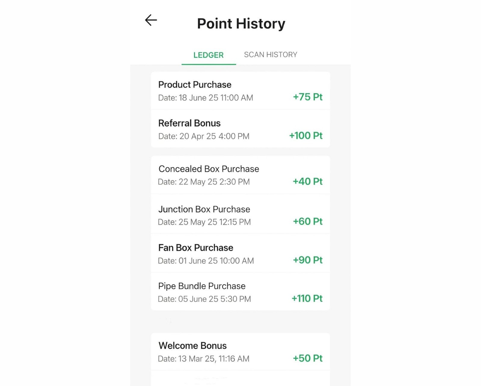 • C: Click on Scan History to know which product you scanned and how many points you earned.