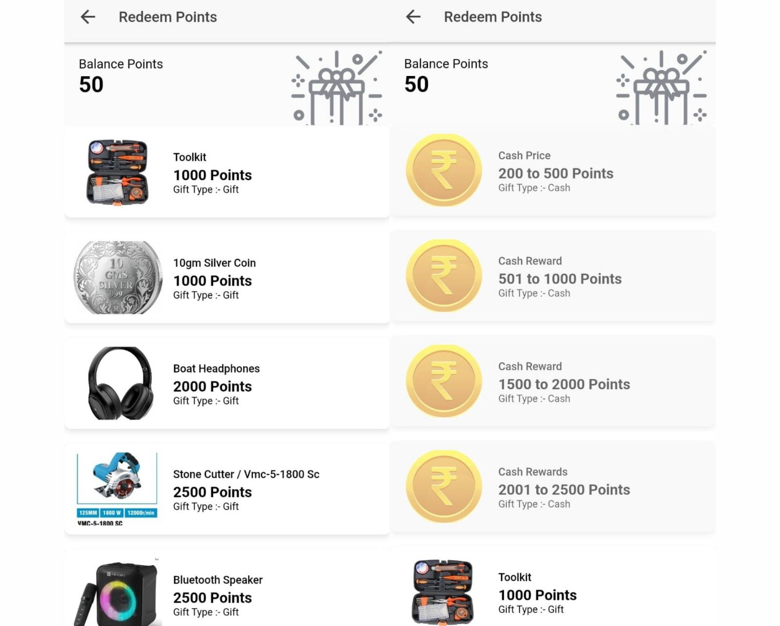 Based on your rewards points, you will be eligible for various benefits. For eg, for 1,000 points, you will get a 10G Silver Coin, and for 60,000 points, you will get a Hero Splendour bike.
